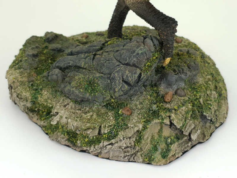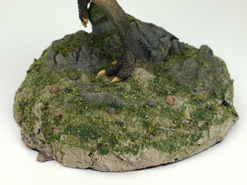 Die Bodenplatte wurde liebevoll mit Diorama-Pflanzen dekoriert, die Unterseite ist mit schwarzem Filz verkleidet.