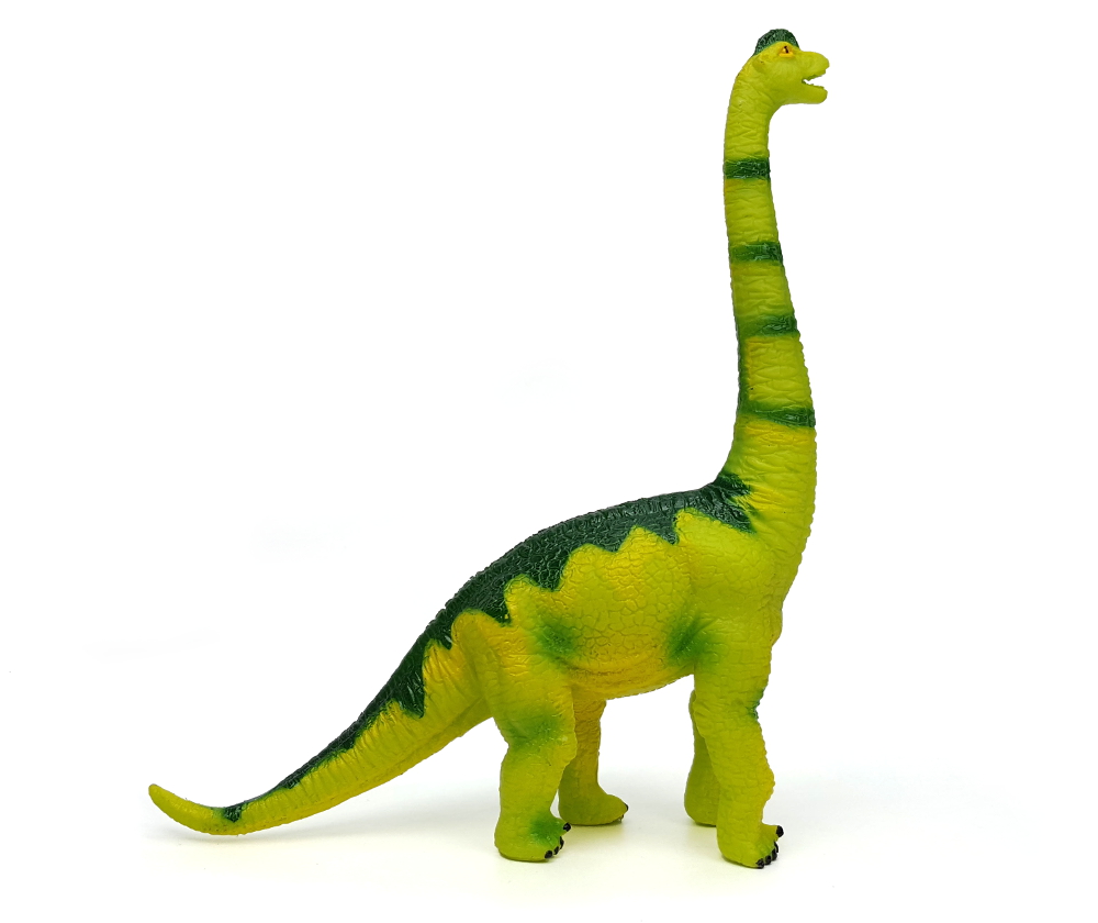 Handbemalte Figur eines Brachiosaurus.