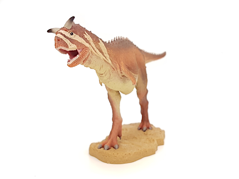 Dieser Carnotaurus aus der Deluxe Editon von CollectA ist aus massivem Kunststoff hergestellt und ansprechend handbemalt, die Hautstruktur und die Falten wurden schön herausgearbeitet.
