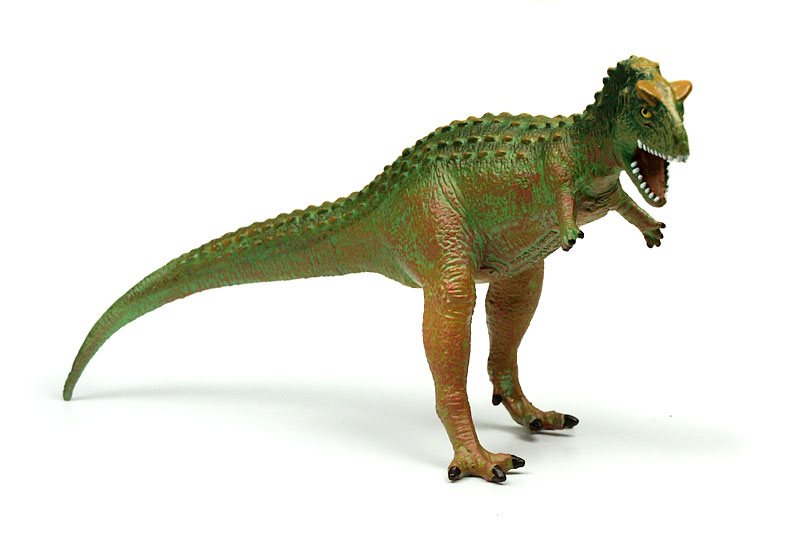 Diese Spielzeug-Figur eines Carnotaurus ist aus massiven Kunststoff hergestellt und ansprechend handkoloriert.