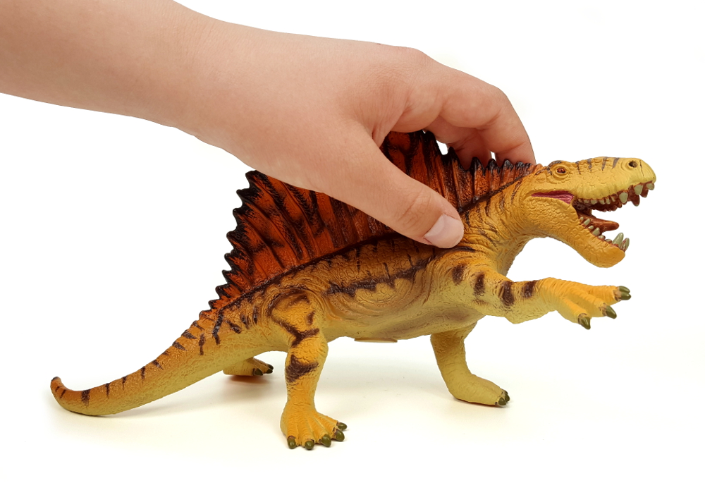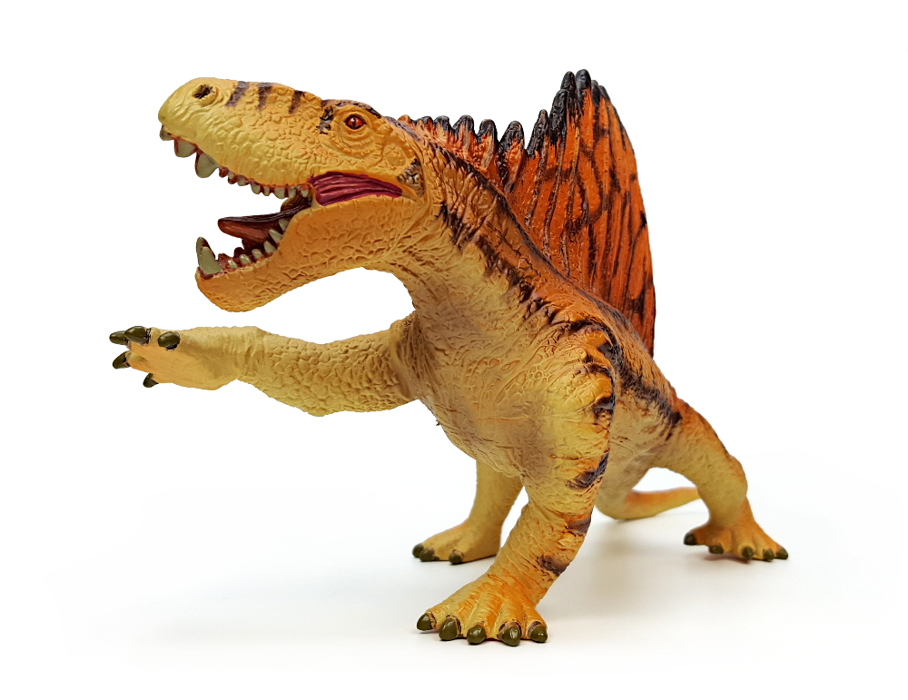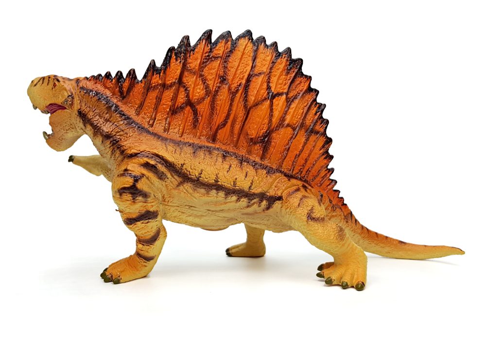 Diese recht große und schön detaillierte Spielzeug-Figur eines Dimetrodon ist handbemalt.