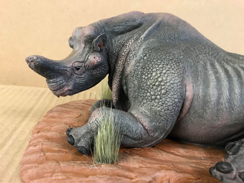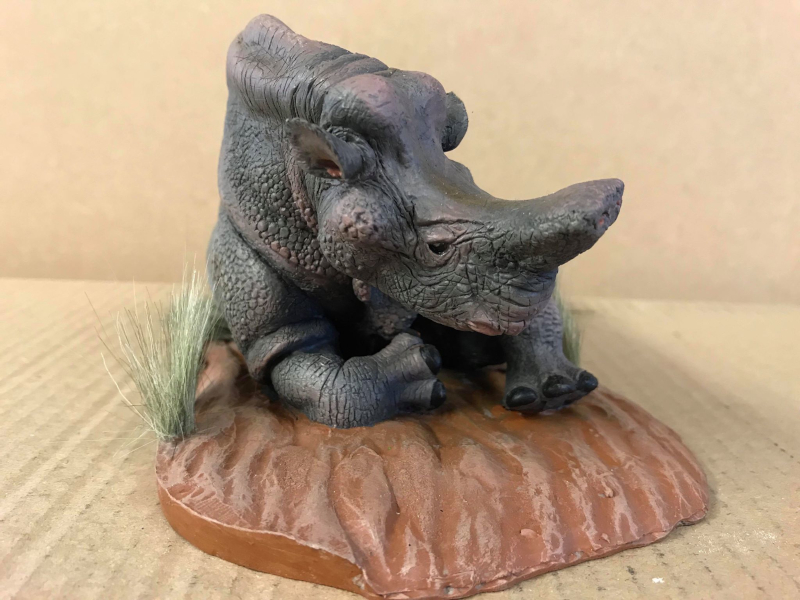 Modell einer ruhenden Embolotherium-Kuh im Maßstab 1:20, 20 cm lang.