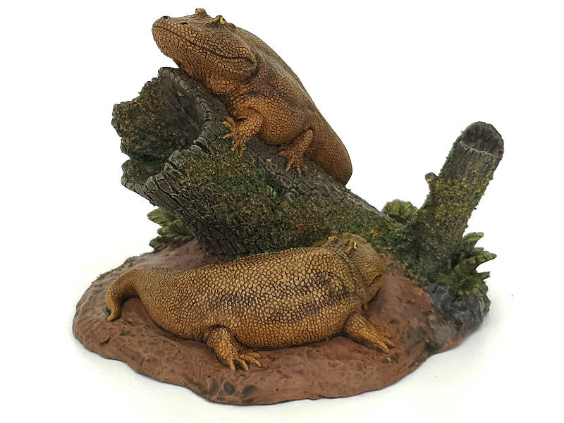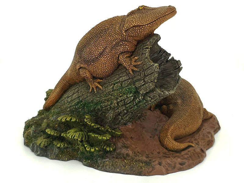 Sehr schönes Modell zweier ruhenden Eryops im Maßstab 1:20, ca. 9,5 cm lang.