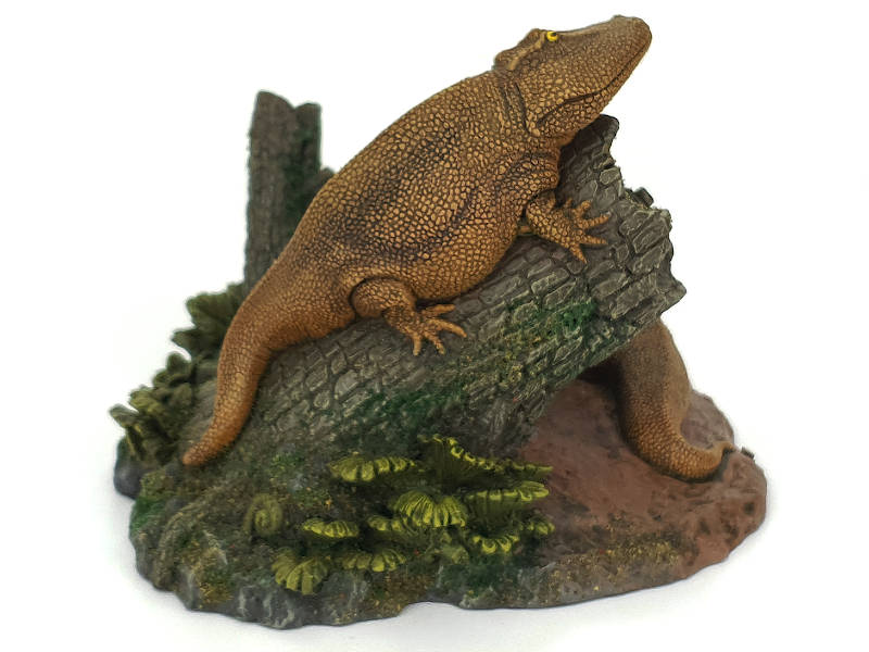 Das Eryops Diorama wird zusammen mit einer Bodenplatte und Glaskuppel geliefert.