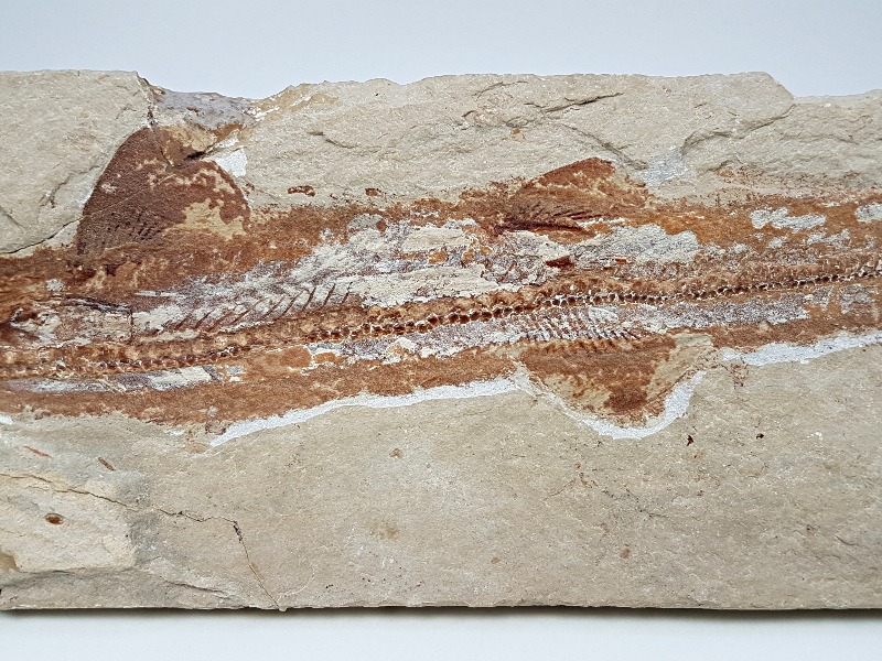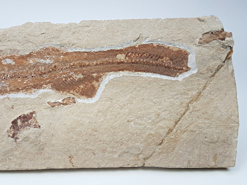 Schöne Preparation eines gut erhaltenen Fossils eines kleinen Hais.