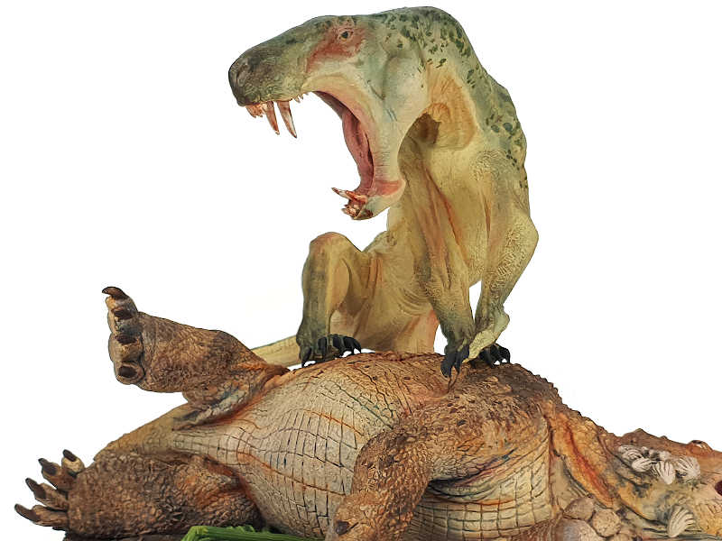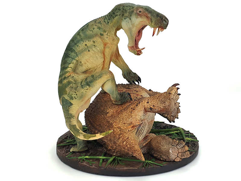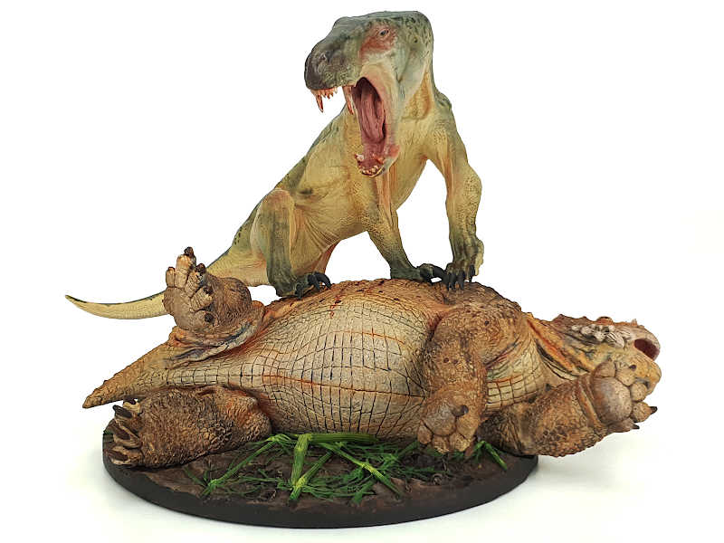 Fantastisches Diorama eines Inostrancevia vs. Scutosaurus im MaĂŸstab 1:10.