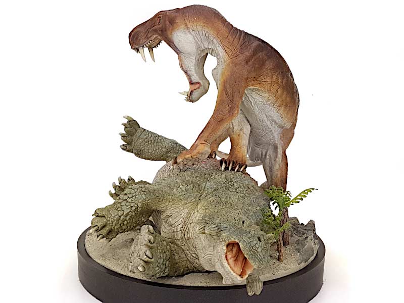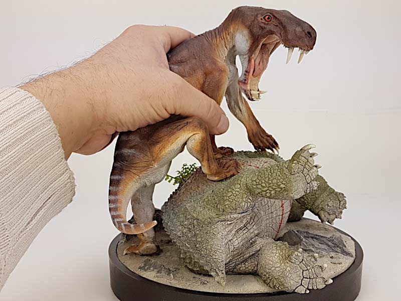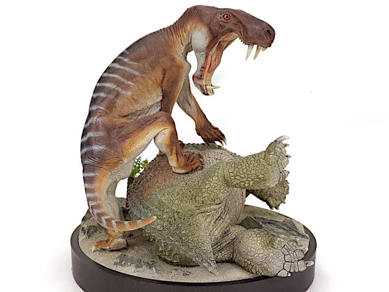 Fantastisches Diorama eines Inostrancevia vs. Scutosaurus im Maßstab 1:10.