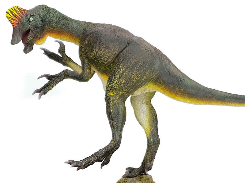 Der Rücken des Oviraptor schillert in dunklen Grüntönen. Das lässt sich auf den Fotos leider nicht einfangen.