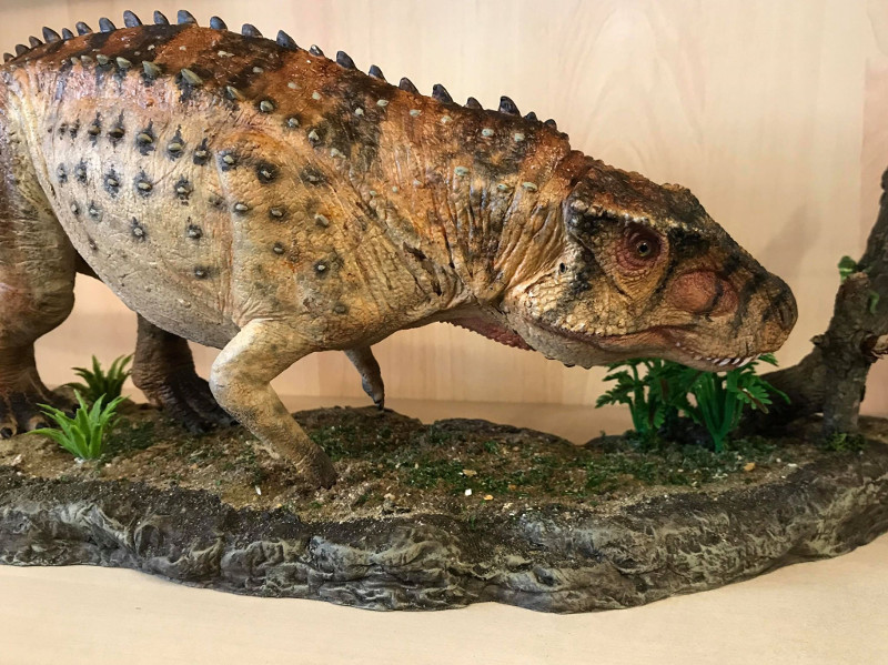Dem Modell des Postosuchus wurden lebensecht wirkende Glas-Augen eingesetzt.