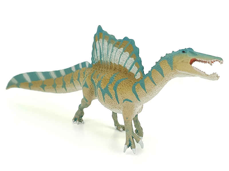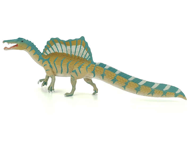 Detailliert gestaltete und ansprechend handbemalte Dinosaurier Spielzeug Figur eines Spinosaurus.