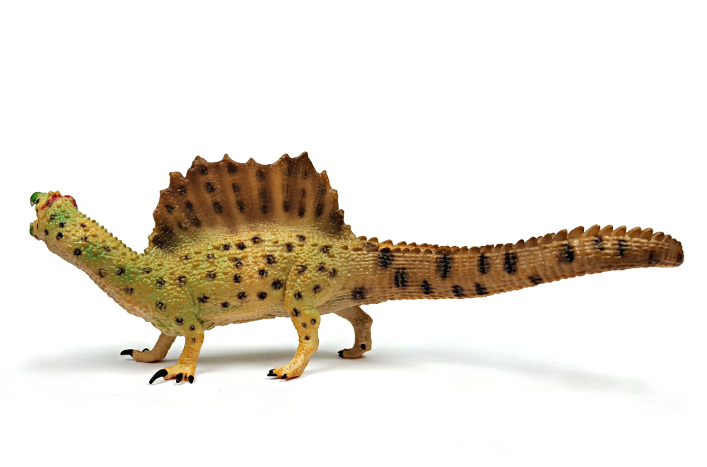 Spinosaurus lebte während der Kreidezeit, vor rund 100 Millionen Jahren, in Afrika und war mit ca. 16 – 18 Metern Länge und einem Gewicht zwischen 7 und 9 Tonnen der größte bekannte Fleisch fressende Dinosaurier. Sein langer krokodilähnlicher Schädel spricht dafür, dass er sich auf die Jagd nach Fischen spezialisiert hatte. Auf dem Rücken trug der Spinosaurus, wahrscheinlich, ein bis zu 2 Meter großes Segel. Die urzeitliche Echse könnte so ihren Temperaturhaushalt reguliert haben. Andere Wissenschaftler spekulieren ob diese langen Dornfortsätze auf den Rückenwirbeln einen Höcker gestützt haben.