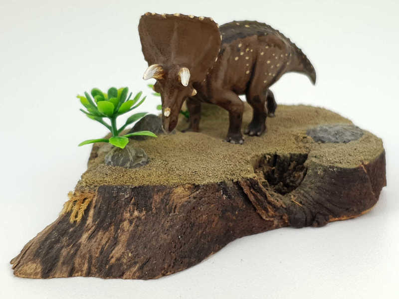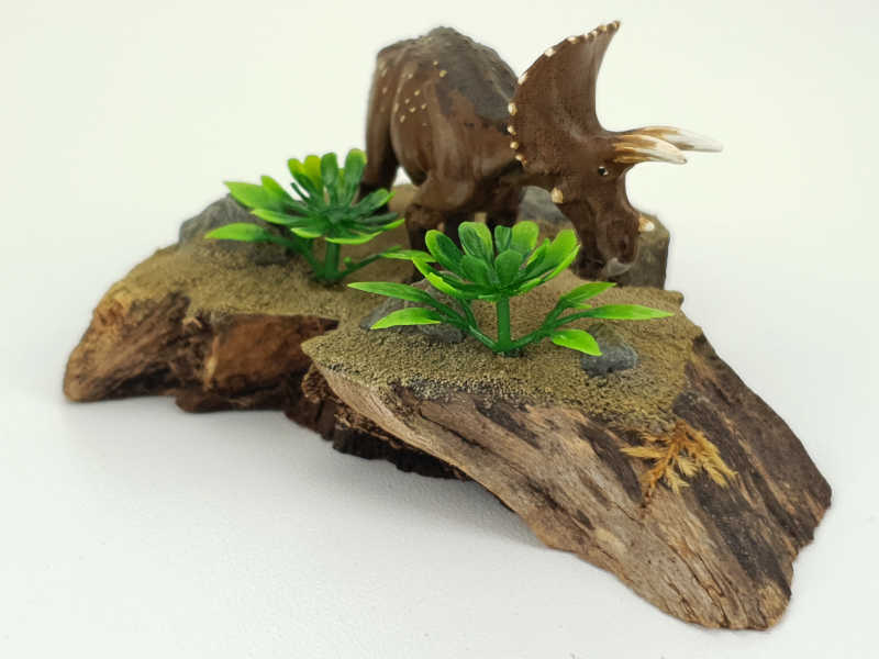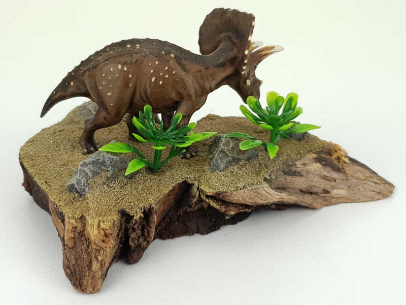 Triceratops war mit seinen ca. 8 m Länge einer der größten der gehörnten Dinosaurier. Triceratops gehörte zur Gruppe der Ceratopsia und war ein Pflanzen fressender Dinosaurier der wahrscheinlich in Herden gegen Ende der Kreidezeit – vor rund 68 – 65 Millionen Jahren – durch das heutige Nordamerika zog.