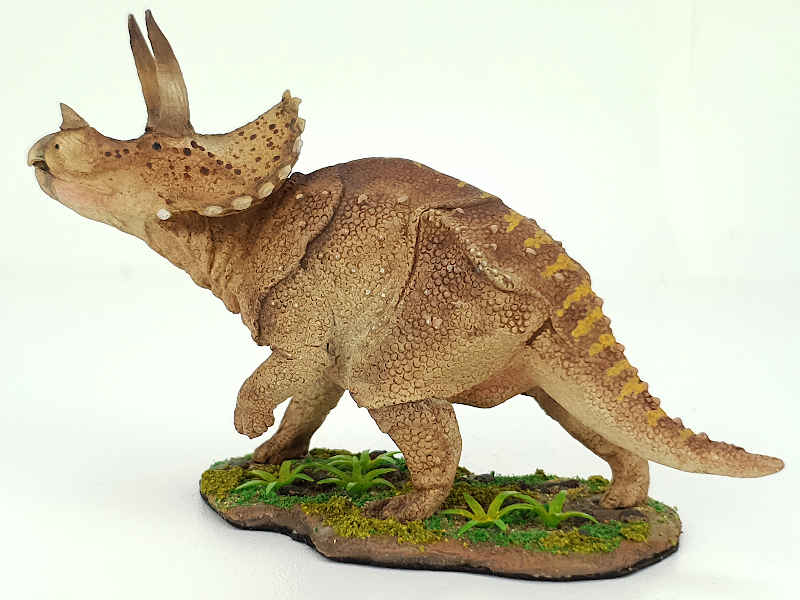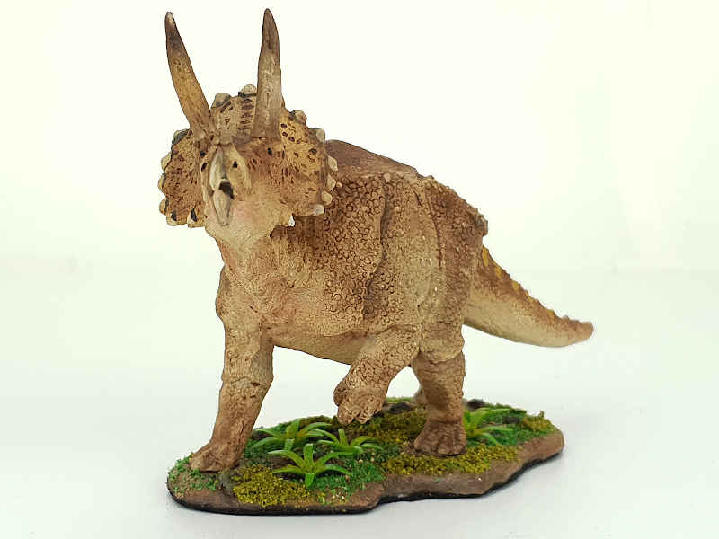 Dieses schön detaillierte Modell eines Triceratops wurde individuell und sehr schön mit Airbrush und Pinsel koloriert.