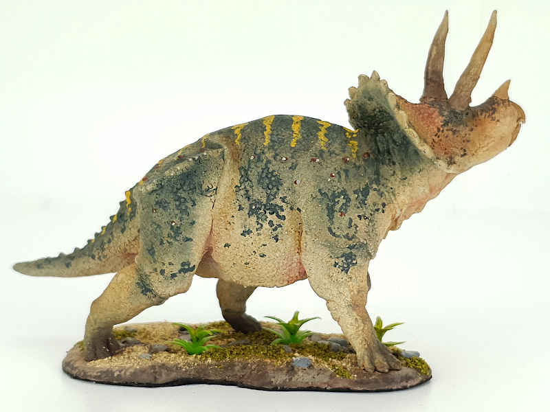 Koloriertes Modell eines Triceratops im MaĂŸstab 1:60, 12 cm lang
