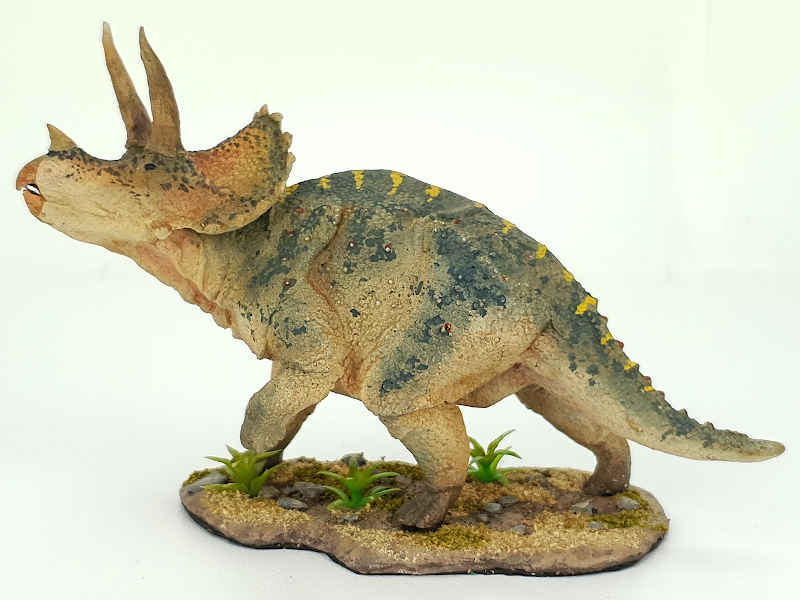 Dieses schön detaillierte Modell eines Triceratops wurde individuell und sehr schön mit Airbrush und Pinsel koloriert.
