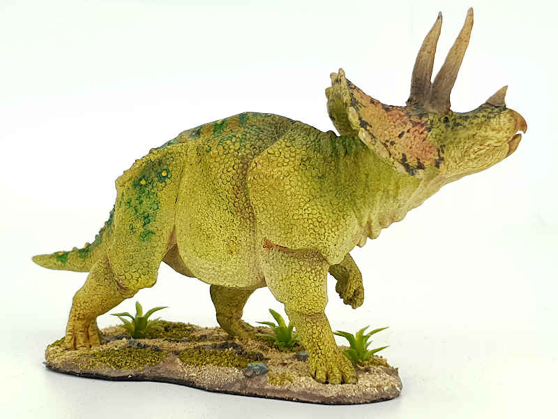 Dieses schön detaillierte Modell eines Triceratops wurde individuell und sehr schön mit Airbrush und Pinsel koloriert.