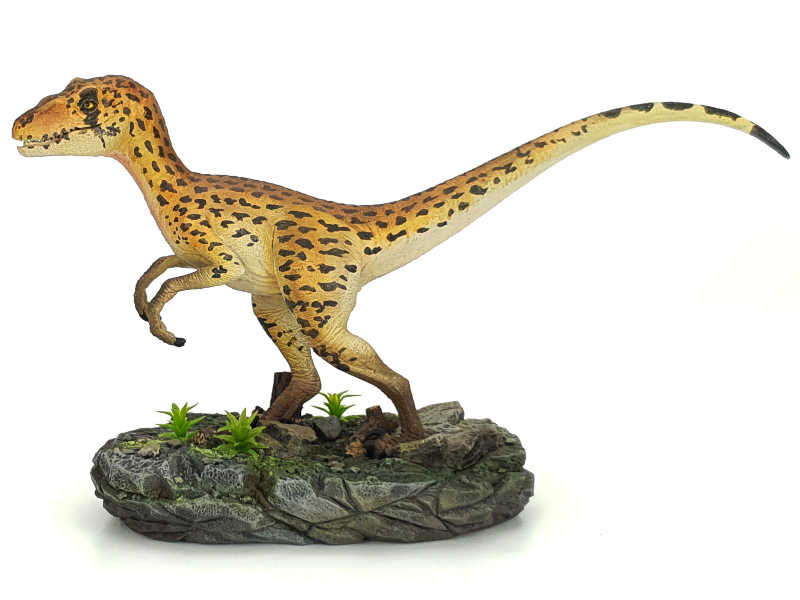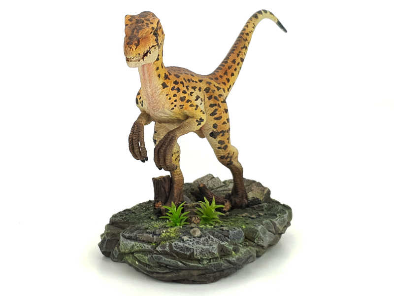 Dieses Modell eines Velociraptor wurde professionell und gekonnt mit Pinsel und Airbrush neu koloriert.